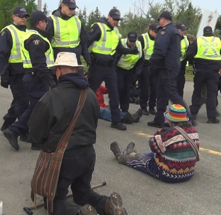 Susan and Dallas McQuarrie being arrested at the shale gas protest site on Route 126 in ...