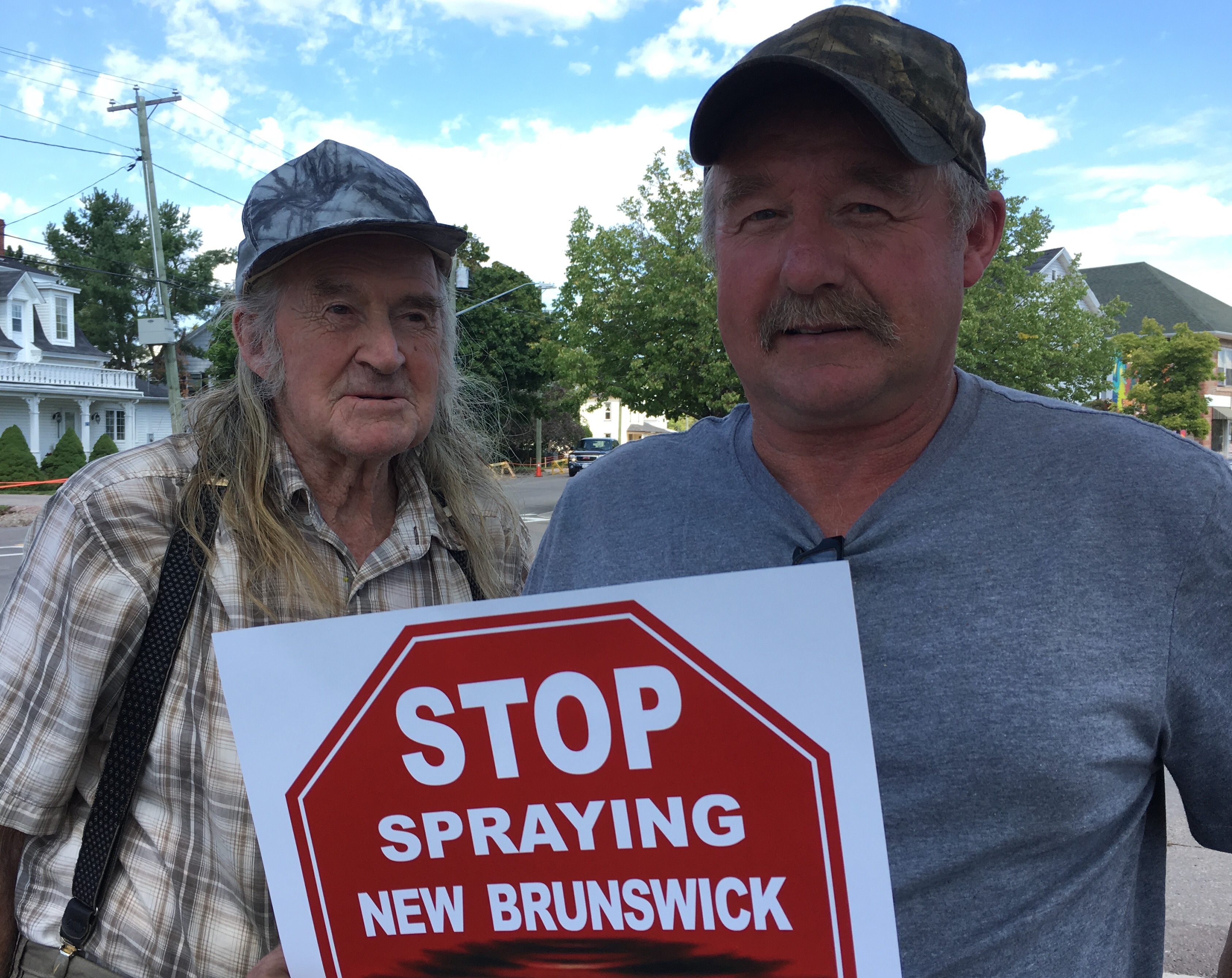 Aric Woodworth, a woods worker, says he is frustrated and does not trust J.D. Irving. He joined the Stop Spraying NB Facebook group and came out to protest. He says he and his 88 year old father, Lester, make their living cutting firewood on their local property, next to an area that J.D. Irving has clearcut and is about to spray. “Last time we weren’t even notified. We worry about the drift of the spray. It could wipe out a lot of our hardwood. I’d like to tell Irving that we just want to make a living here too,” said Woodworth.