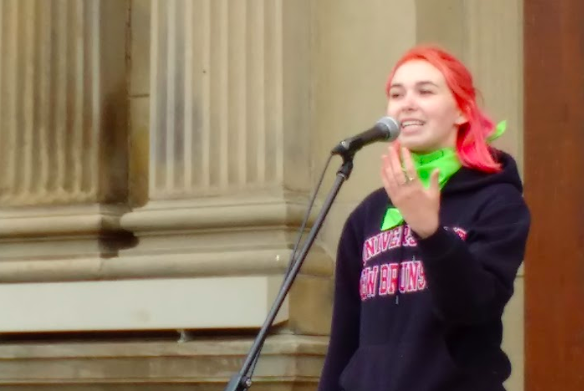 Tamara and Annabelle, both age 16, spoke together. In a video interview after their speech, Annabelle explained: “Change needs to happen, and it’s not going to happen on its own. We need to fight for it, and the government’s not going to do it if we don’t ask.” Tamara said: “I’m here because I’m scared every single day for my future. It’s important that we come here and make a change. You know there’s a big problem when the leaders act like the children, and the children act like the leaders.”