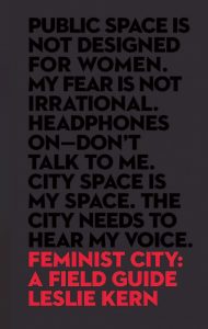 Kern speaks directly to gendered violence in Feminist City in a chapter titled “City of Fear.” She writes, “The constant…threat of violence mixed with daily harassment shapes women’s urban lives in countless conscious and unconscious ways. Just as workplace harassment chases women out of positions of power and erases their contributions to science, politics, art, and culture, the spectre of urban violence limits women’s choices, power, and economic opportunities.”