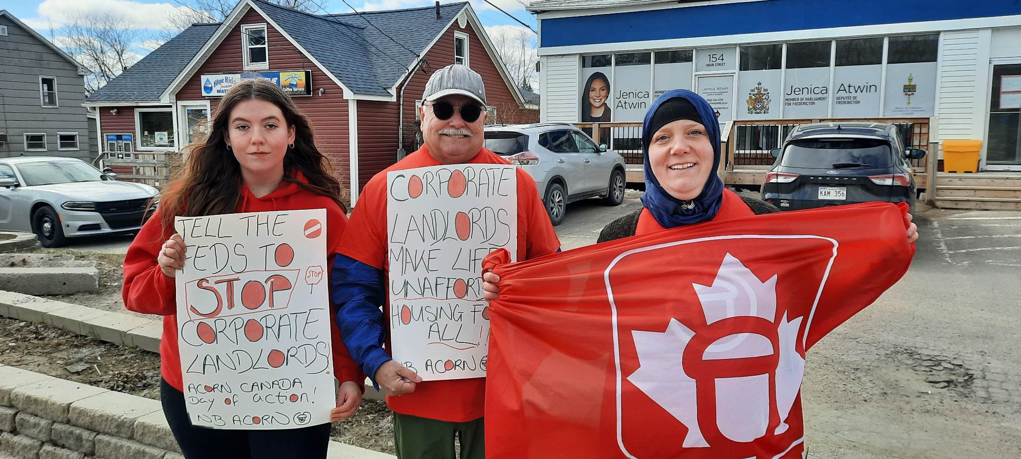 Myself and two ACORN members protested outside Fredericton MP Jenica Atwin’s office to raise awareness that the federal government is letting tenants down. Atwin did come out to speak to the three of us to understand why we were there and we handed her a letter from ACORN with our demands.