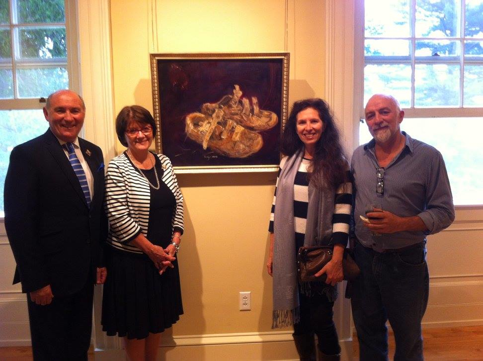 Lieutenant Governor Jocelyne Roy-Vienneau (left) and artist Eugenia Dietrich (right) stand next to Dietrich's painting. Photo ...