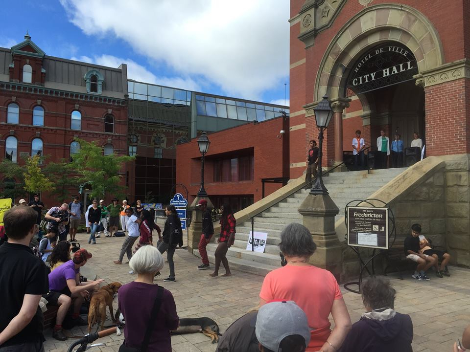 Over 100 people attended the "Refugees Welcome! Rally in Fredericton on Sept. 12. Signs read "Freedom ...